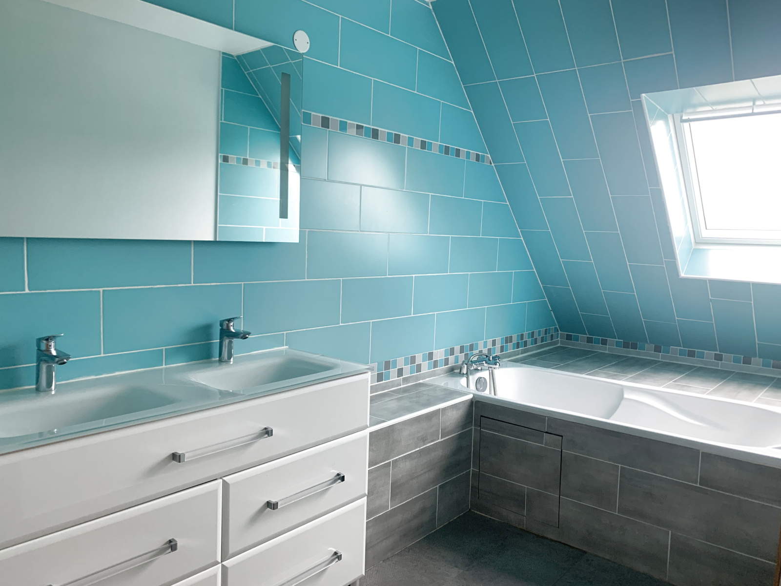 À l'étage ; Une chambre, salle de bains WC.