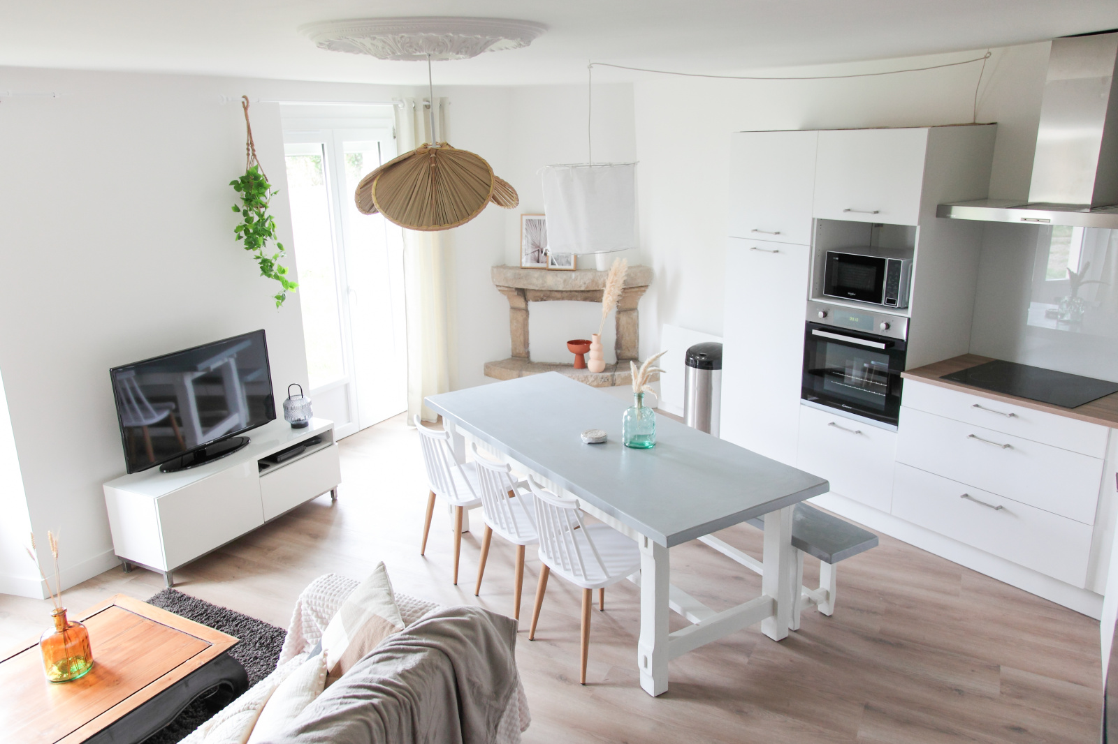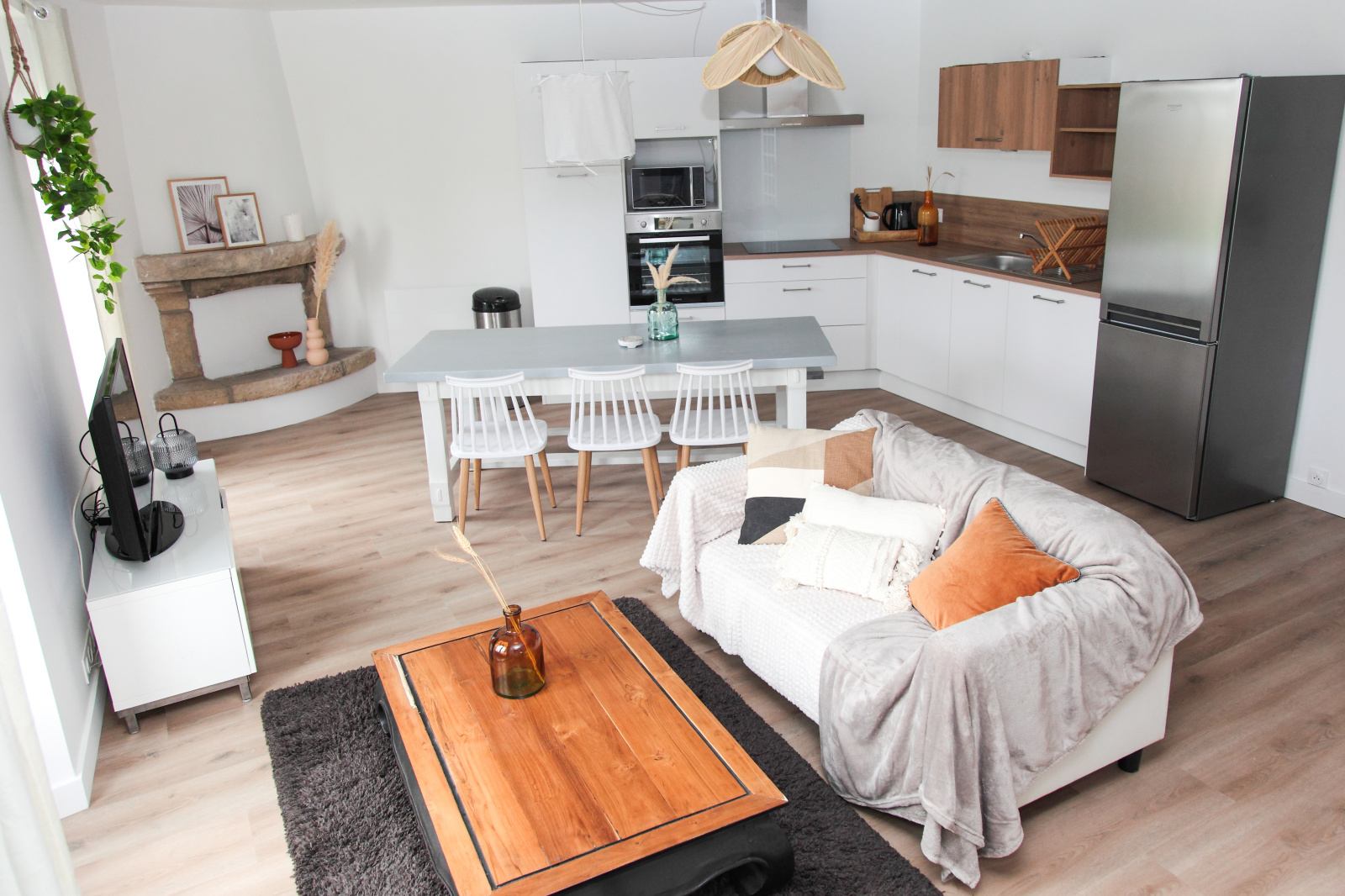 Un garage attenant et une cour complètent l’ensemble.