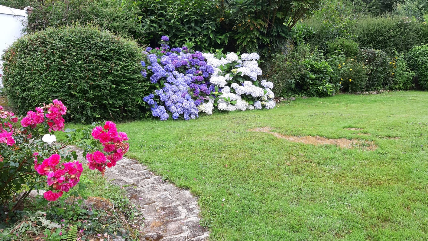 Jardin clos arboré de 1257 m² avec terrasse. Chauffage au sol gaz de ville