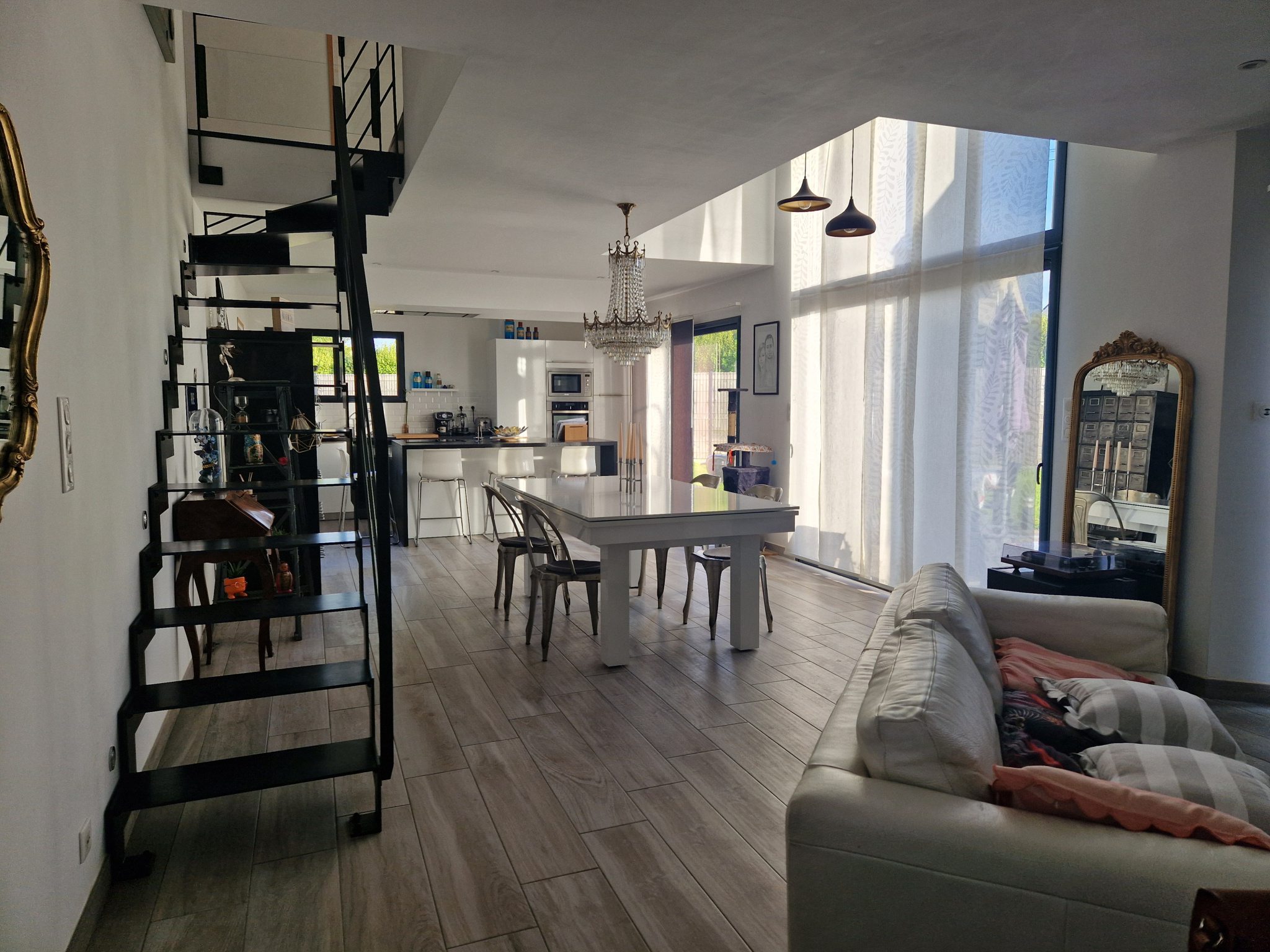 C'est exactement ce qu'il vous faut!! une maison contemporaine avec une décoration qui respire le CHARME & L'ELEGANCE....elle comprend au rez de chaussée: une entrée sur une piéce de vie composée; un salon-séjour ouvert sur une cuisine aménagée et équipée, une chambre privative avec placards et une salle d'eau, un WC avec un lave-mains, une buanderie et un garage avec un grenier au dessus. A l'étage: un palier mézzannine avec un espace bureau, trois chambres avec placards, une salle de bains et un WC.