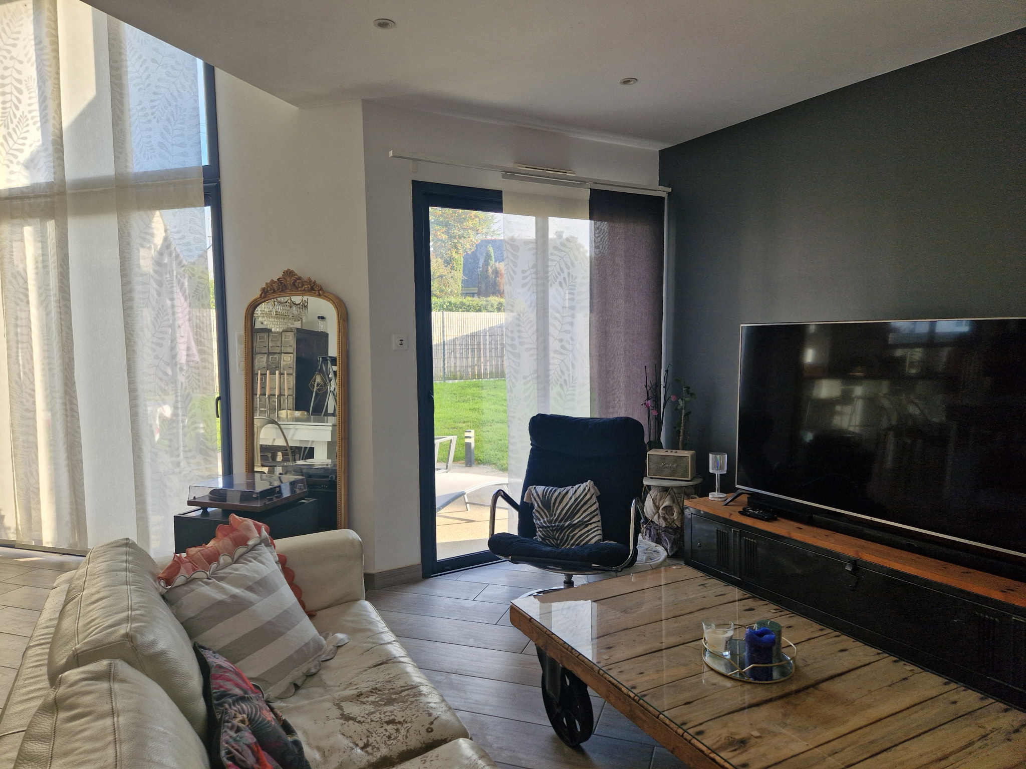 A l'extérieur; un jardin clos d'environ 519 m² avec une terrassse exposée plein sud.
